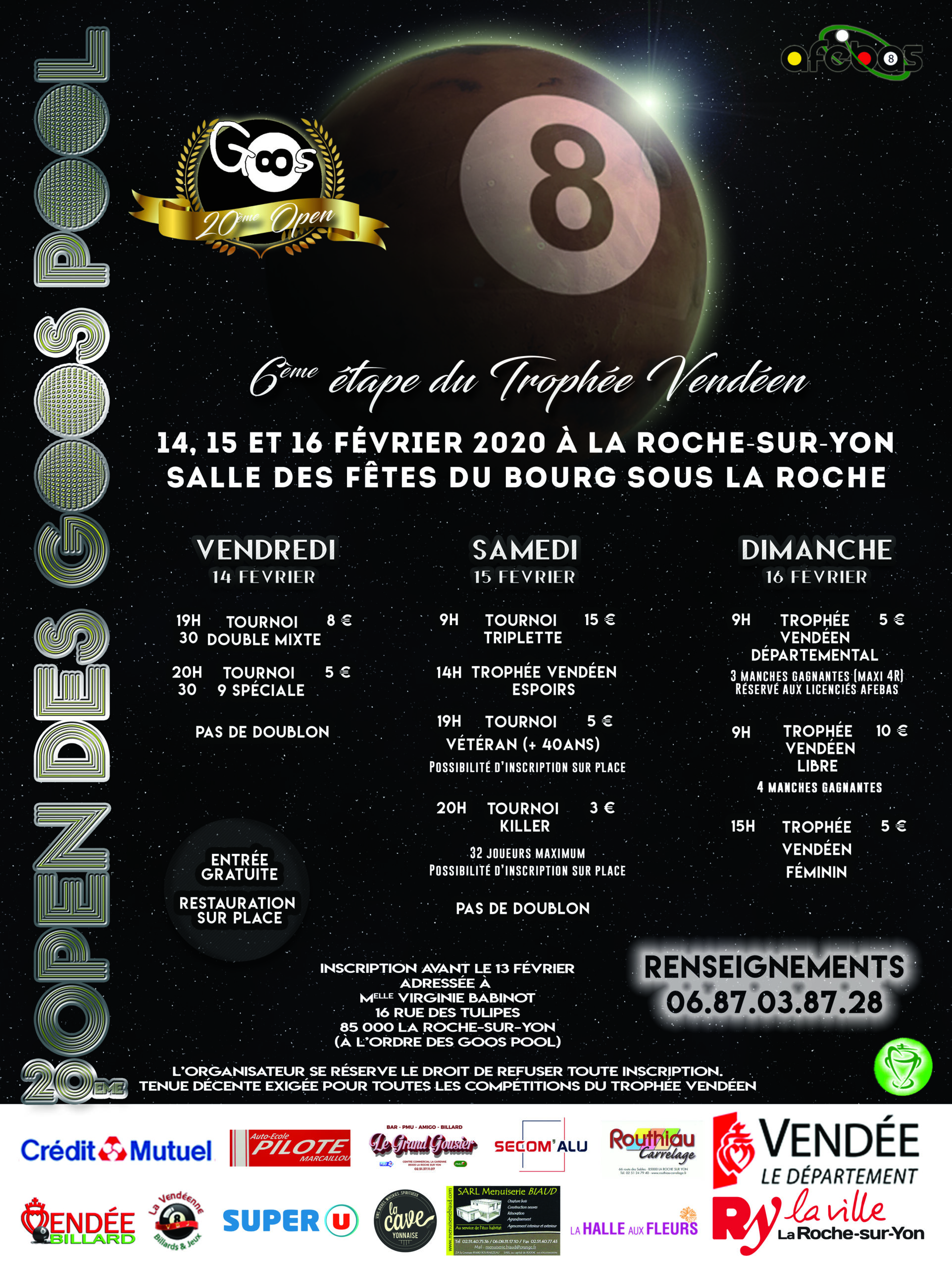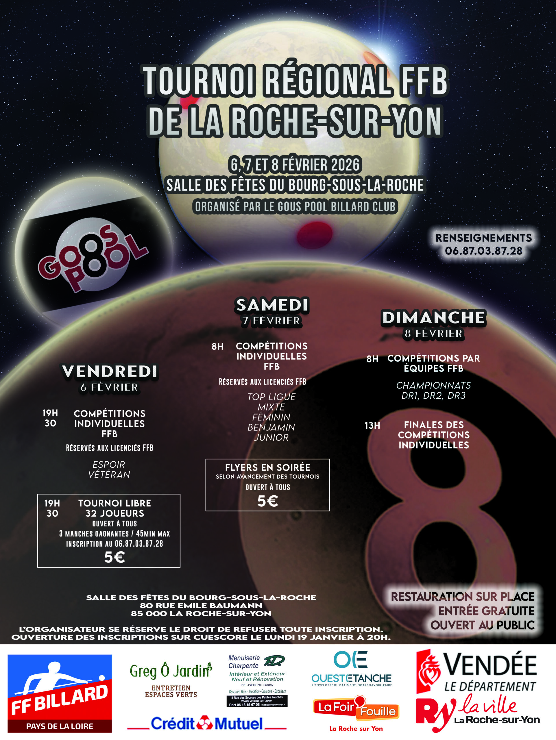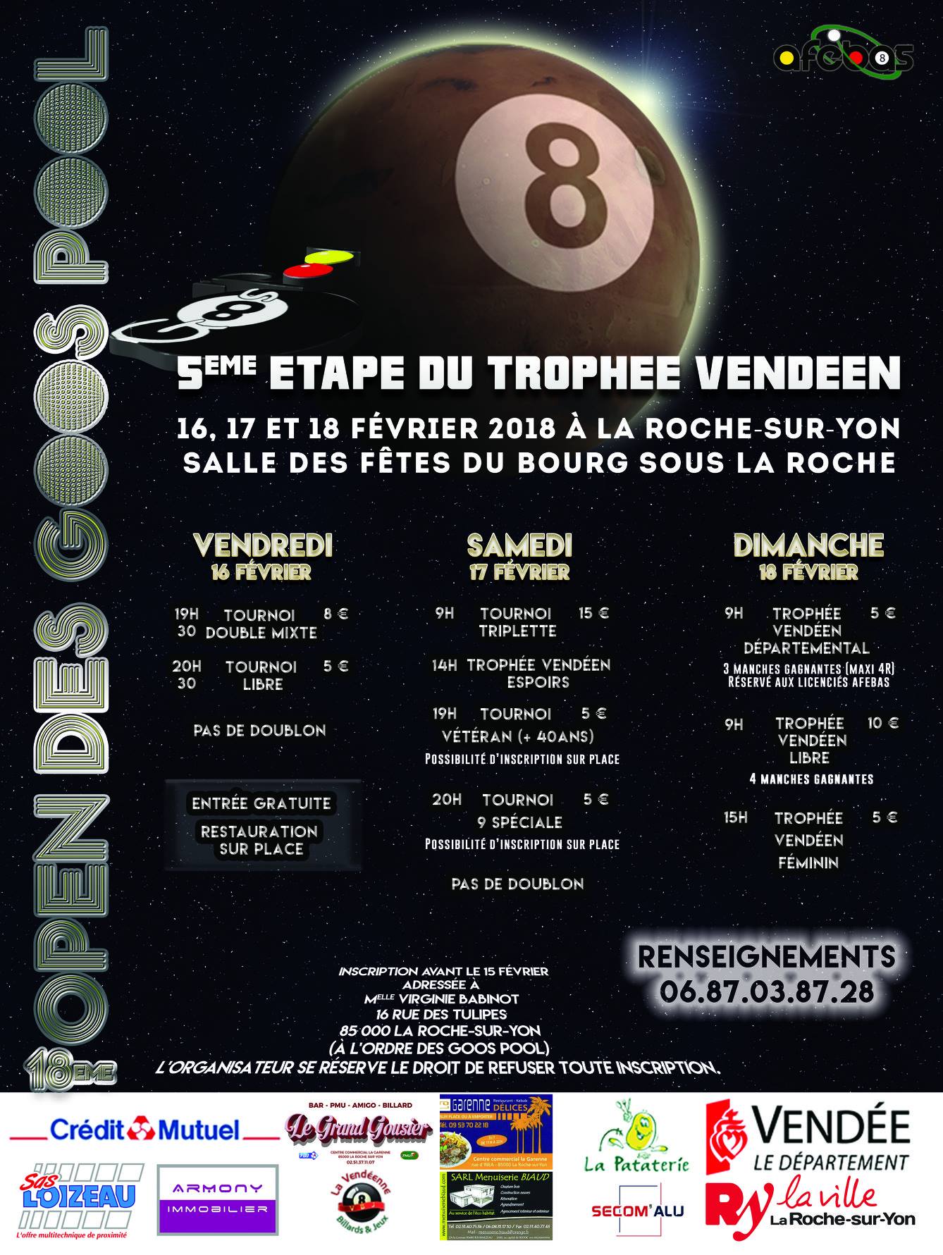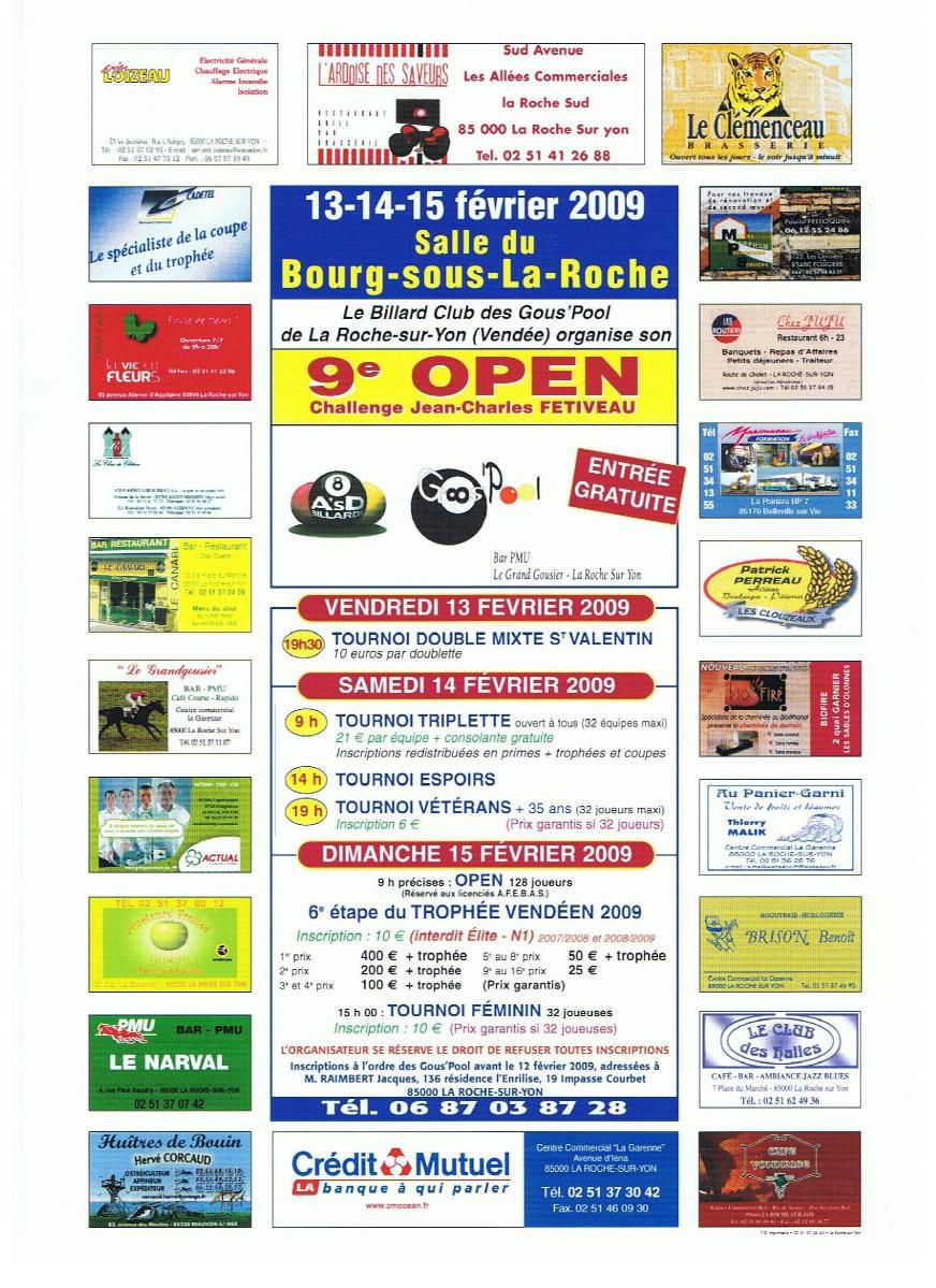 Tous les ans, le club organise son Open à la Salle des fêtes du Bourg-sous-la-Roche, à la Roche-sur-Yon (85).