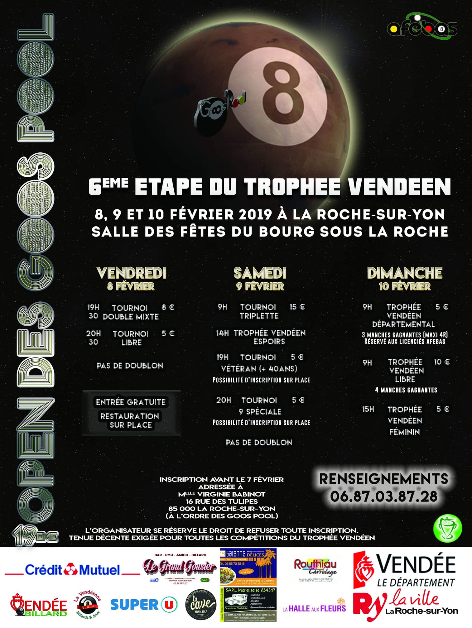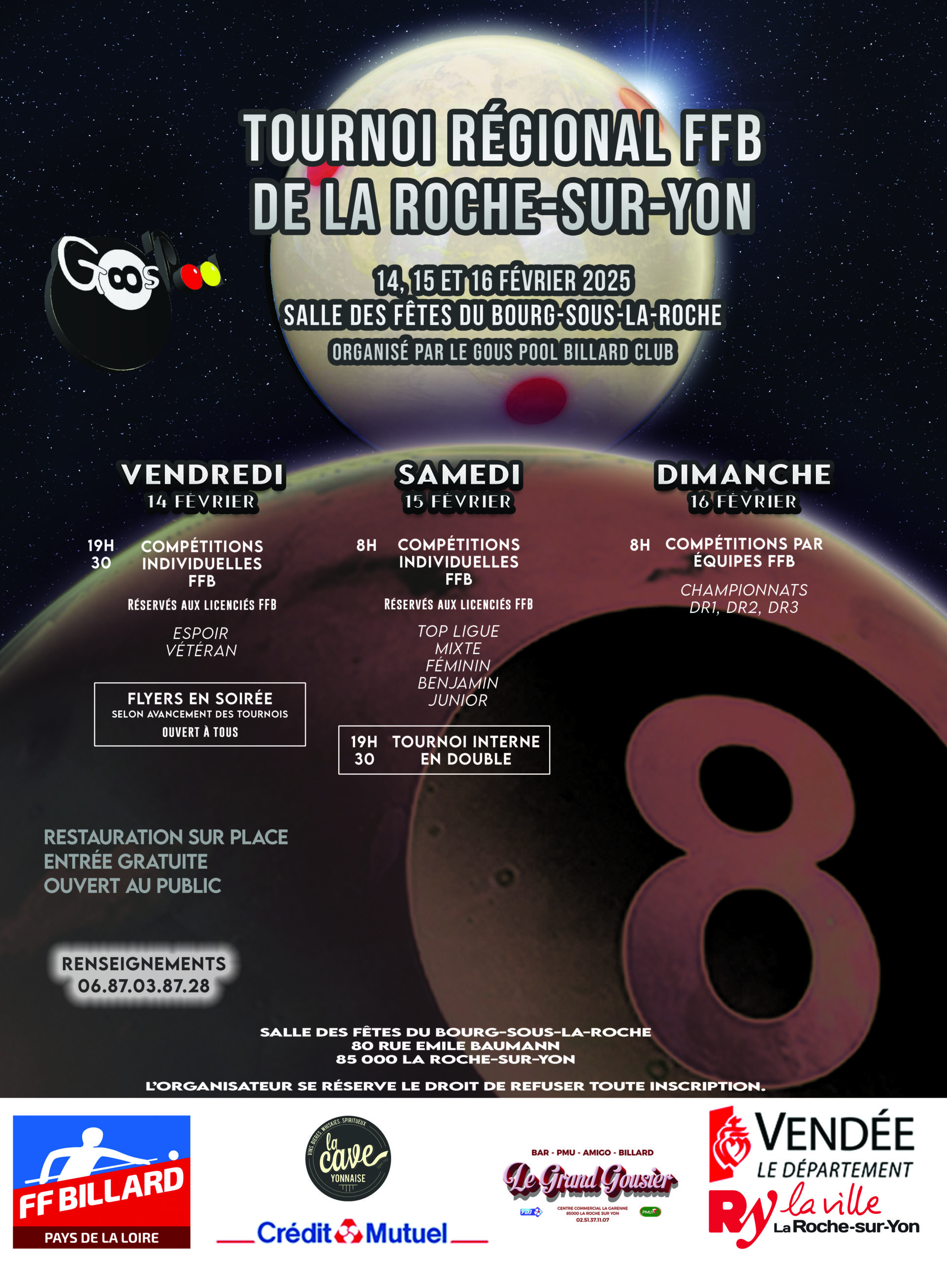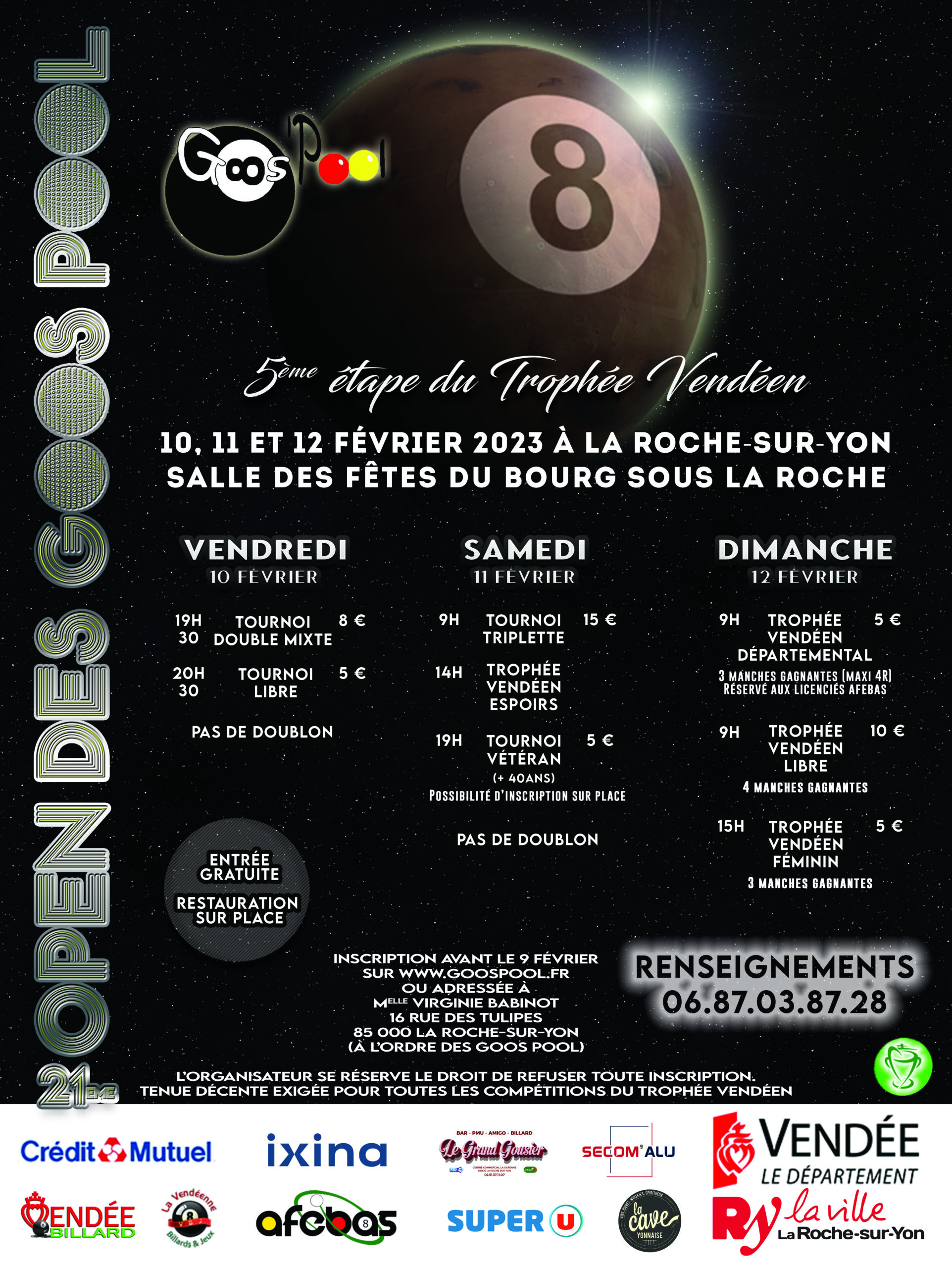 Tous les ans, le club organise son Open à la Salle des fêtes du Bourg-sous-la-Roche, à la Roche-sur-Yon (85).